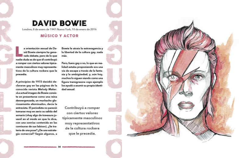 En el caso de “Orgullo” el libro recupera 50 figuras icónicas del movimiento LGTBI+ a propósito de su 50° aniversario. Se trata de personas que fueron activistas, pioneras o simplemente vivieron en un momento donde amar a quien no correspondía según el mandato social hetero-normativo, o su cuerpo no se correspondía con su identidad.